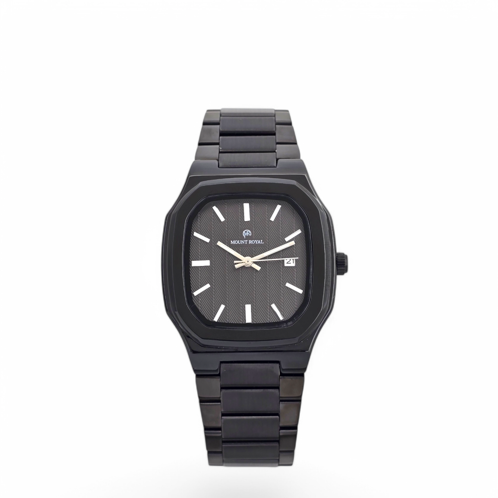 ساعة مونت رويال الرجالية باللون الأسود مع مينا مستطيلة